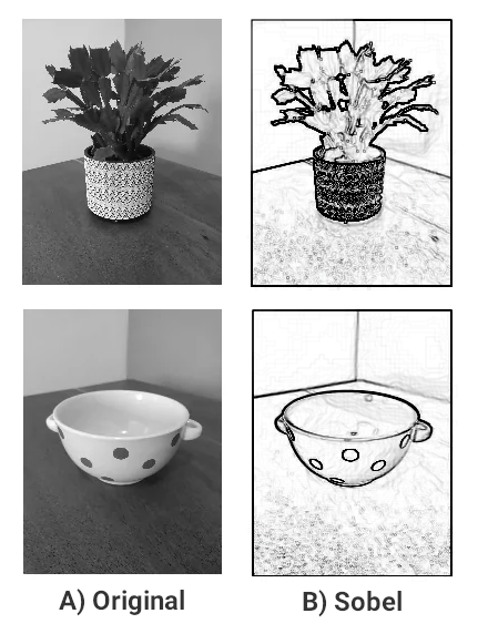 Na ilustração da Fig.6, são demonstradas as aplicações de dois filtros em sua forma discreta, o filtro gaussiano e o filtro Laplaciano, com núcleo de tamanho 3 x 3. O filtro gaussiano tem como característica, reduzir os ruídos das imagens e possui o efeito de borrão. O filtro Laplaciano destaca regiões de rápida mudança de intensidade, portanto, é frequentemente usado para detecção de bordas. Normalmente o filtro Laplaciano é utilizado após a imagem ser suavizada com outro filtro, como o gaussiano, nesta ilustração não foi utilizado esta suavização.